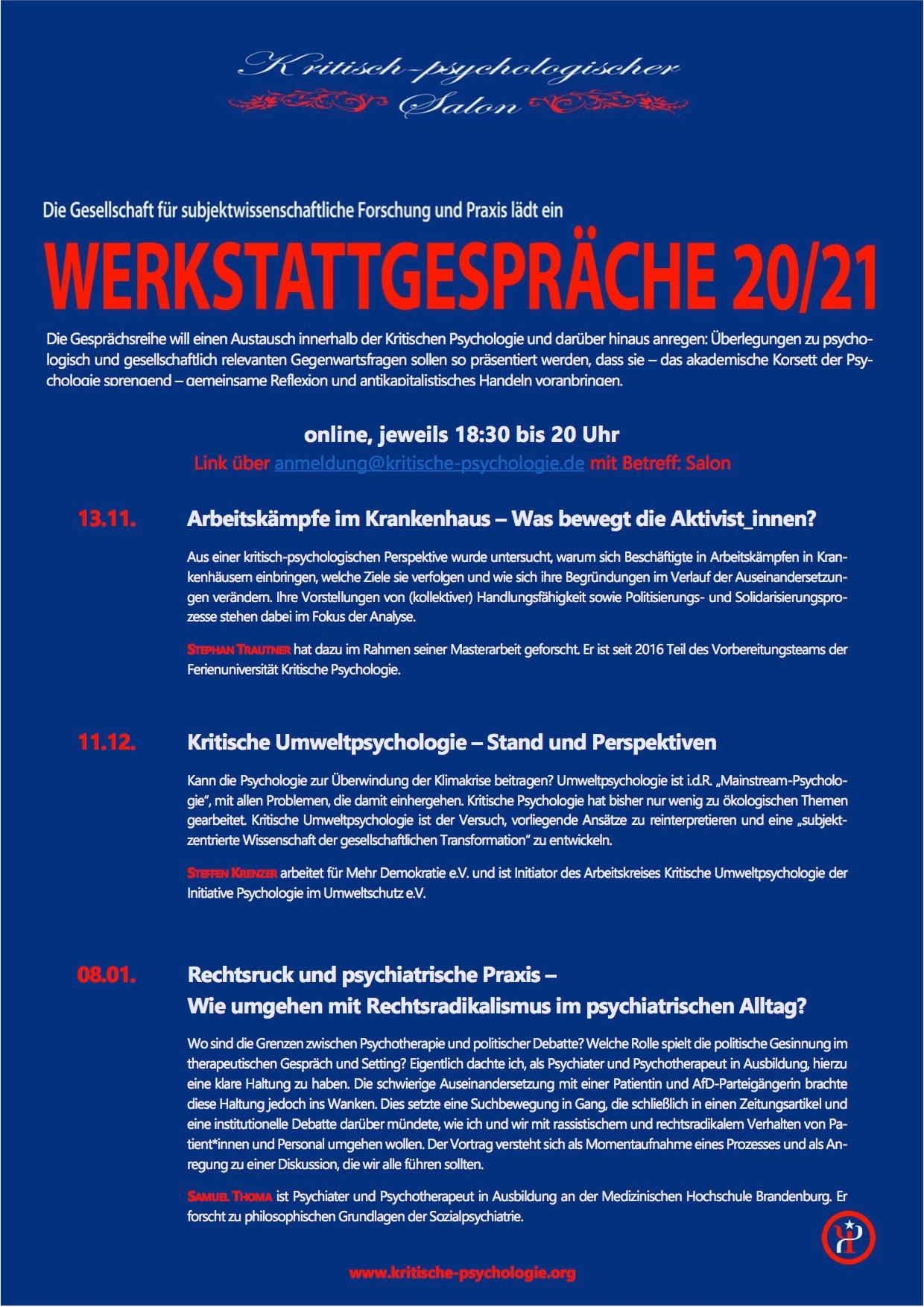 Zugangsdaten per E-Mail an anmeldung@kritische-psychologie.de, Betreff: Salon